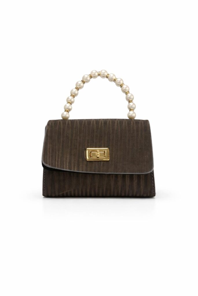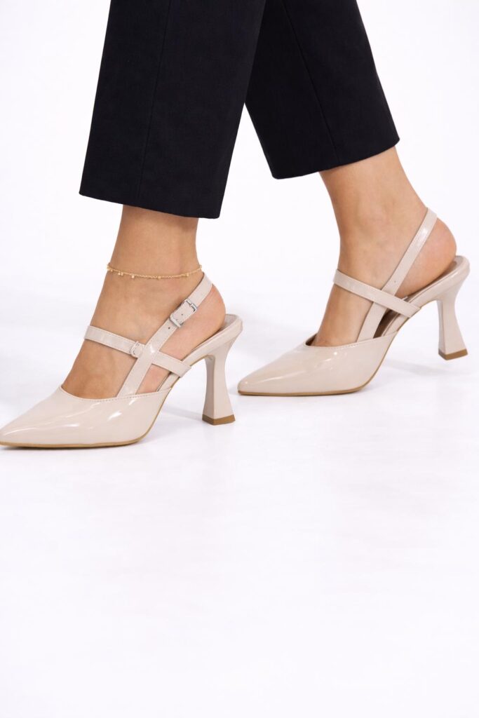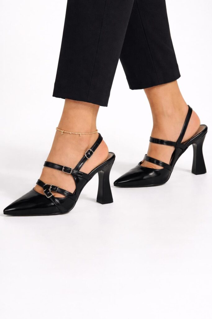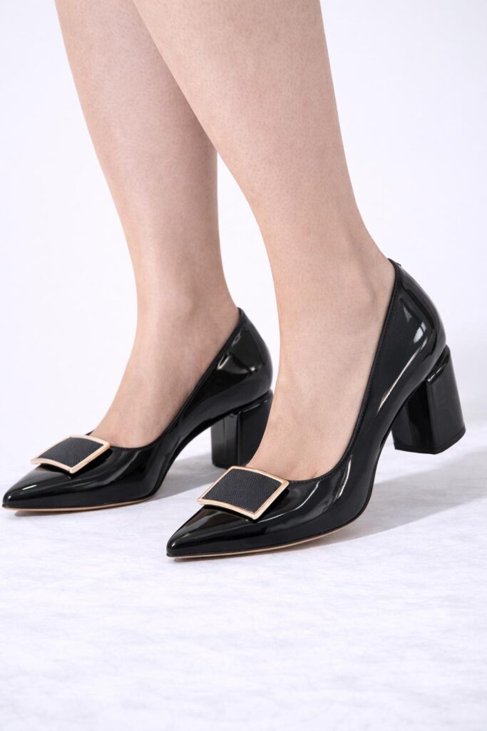 Mira İnci Detaylı Siyah Rugan Topuklu Ayakkabı