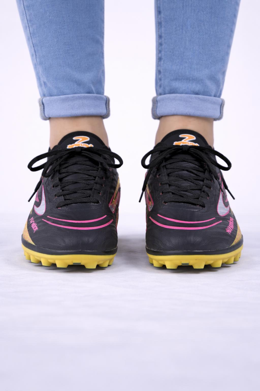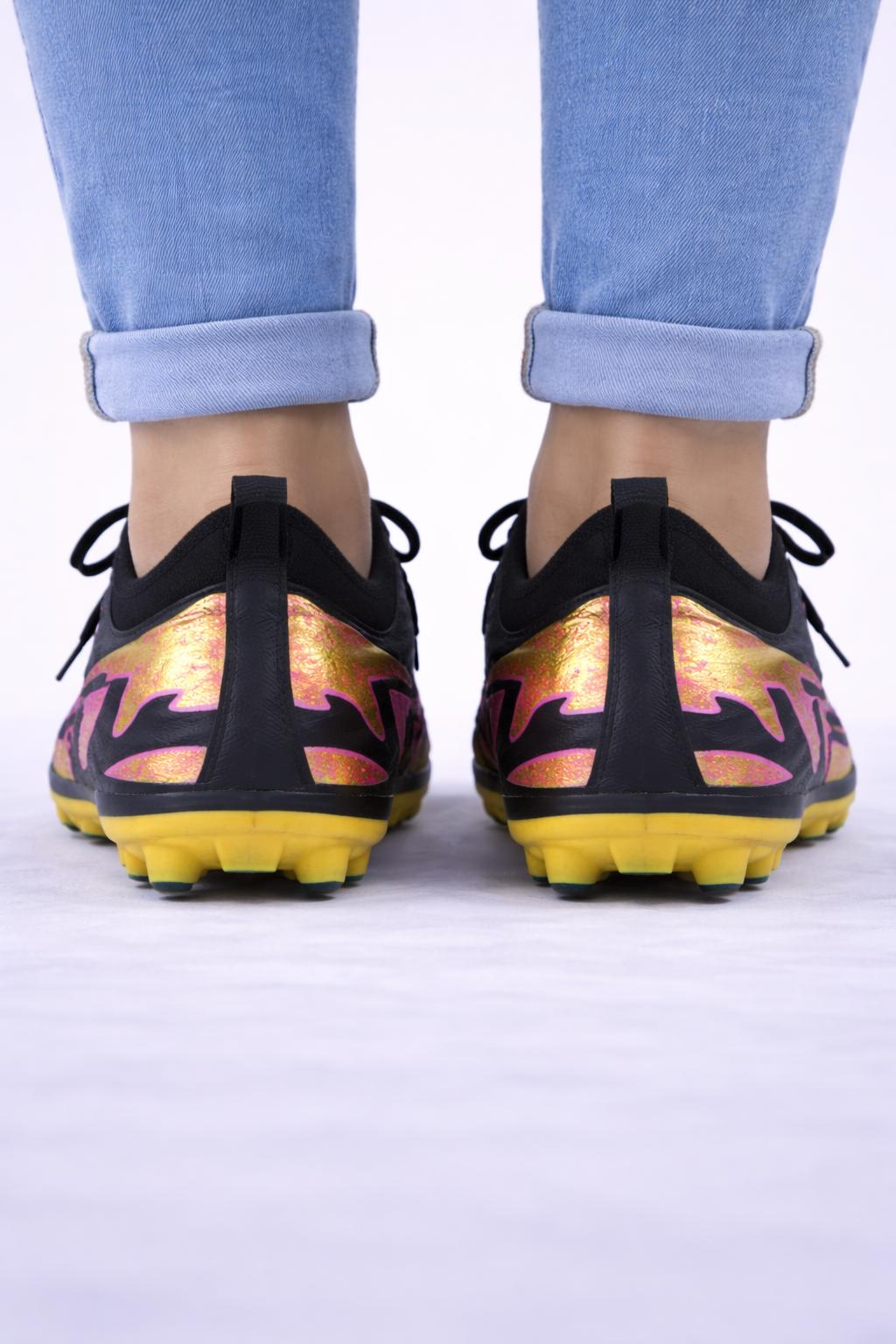 AirVolt Shadow Gold Elite Krampon, sahada hız, denge ve güçlü tutuş arayan oyuncular için tasarlanmıştır. Siyah zemin üzerine gold ve neon pembe detaylarıyla dikkat çekici, iddialı ve modern bir görünüm sunar.