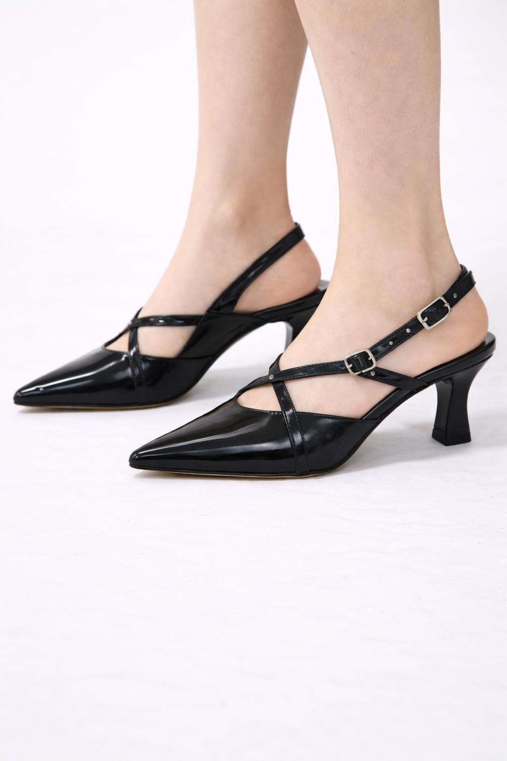Zarif ve iddialı tasarımıyla öne çıkan Luna Siyah Rugan Çapraz Bantlı Slingback, klasik şıklığı modern detaylarla buluşturur. Parlak rugan yüzeyi sayesinde sofistike bir görünüm sunarken, sivri burun formu ayağı daha ince ve uzun gösterir.