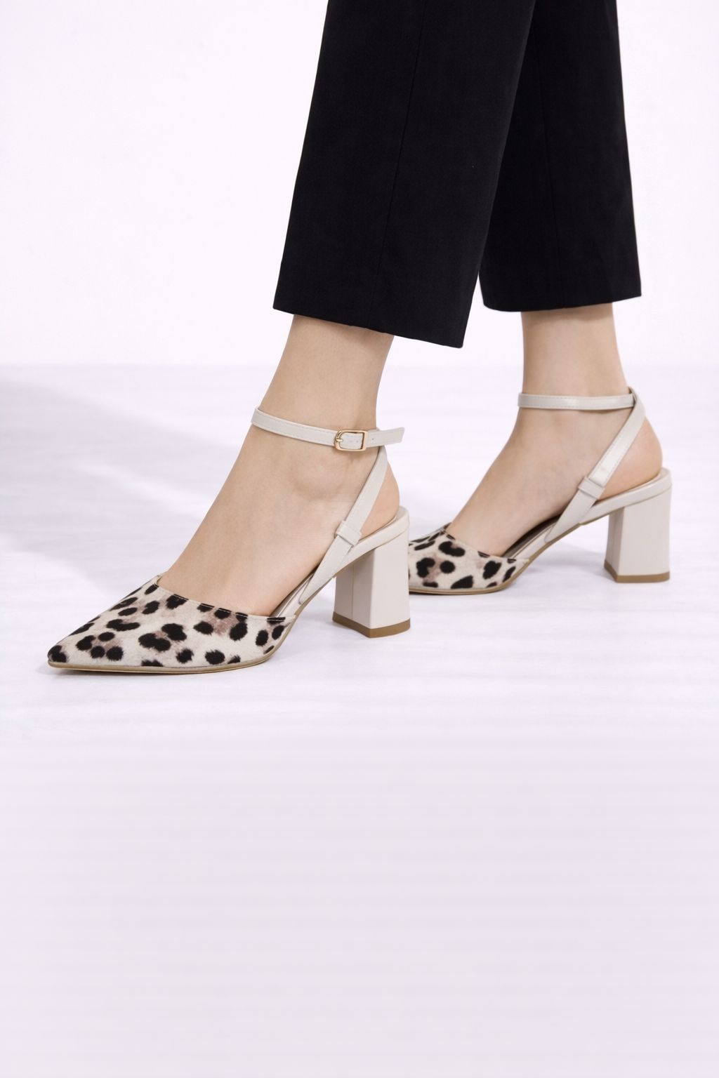 Leopar Desen Sivri Burun Topuklu Slingback Sandalet, zarif ve iddialı tasarımıyla stilinize modern bir dokunuş katmak için tasarlandı. Sivri burun formu ayağa daha ince ve uzun bir görünüm kazandırırken, leopar desenli yüzeyi kombinlere güçlü bir karakter ekler.