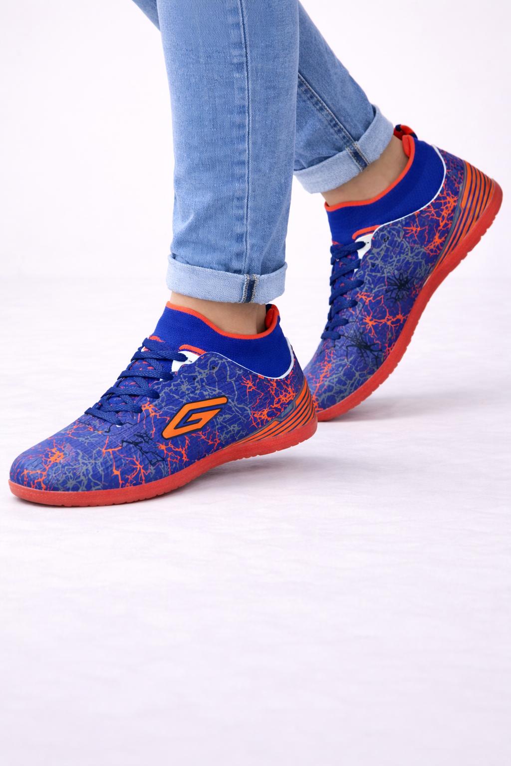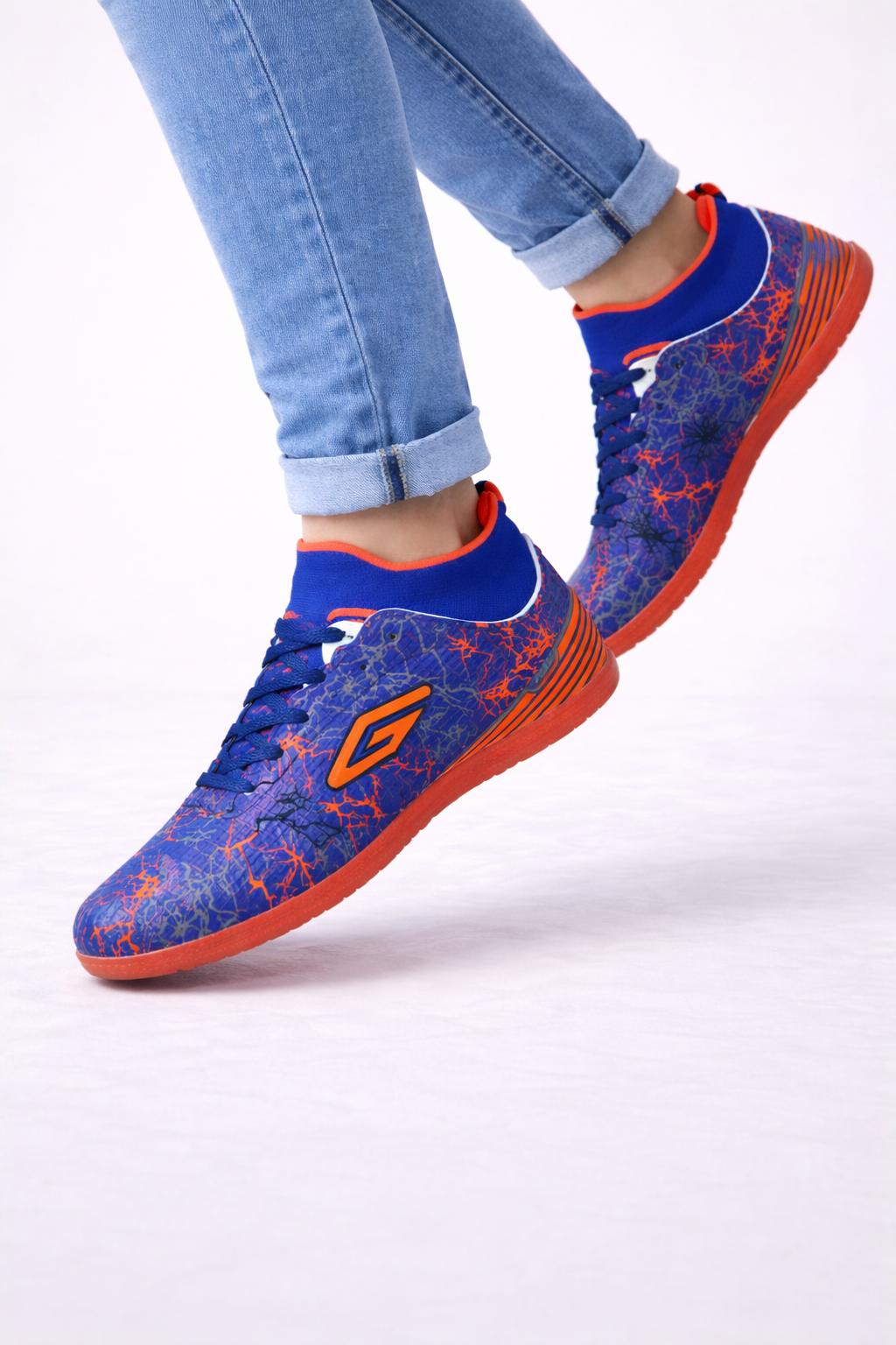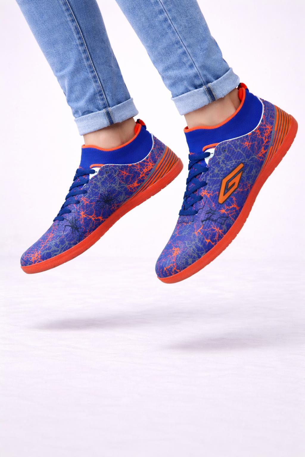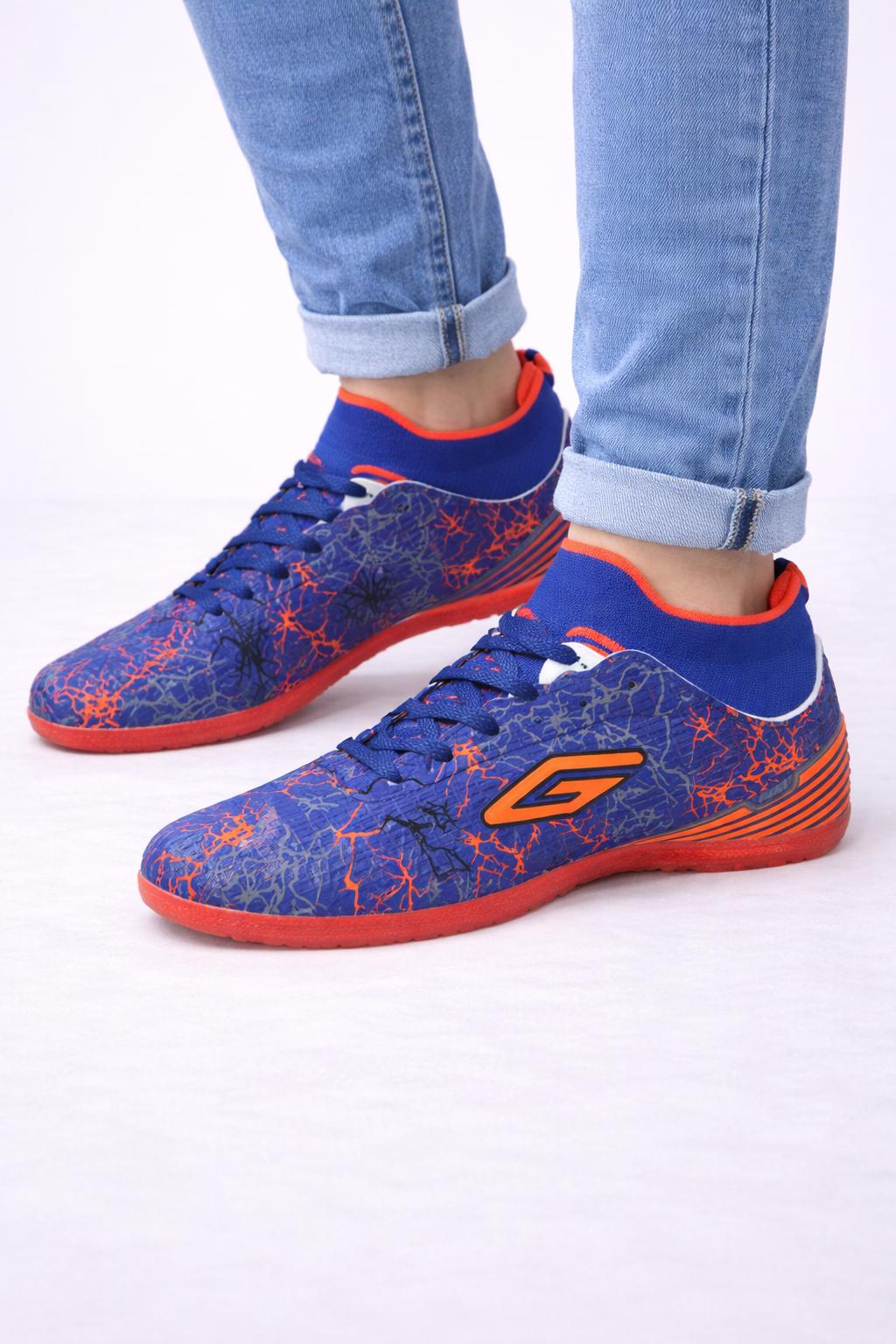 Mavi Turuncu Erkek Halı Saha Ayakkabısı – Desenli Performans Model