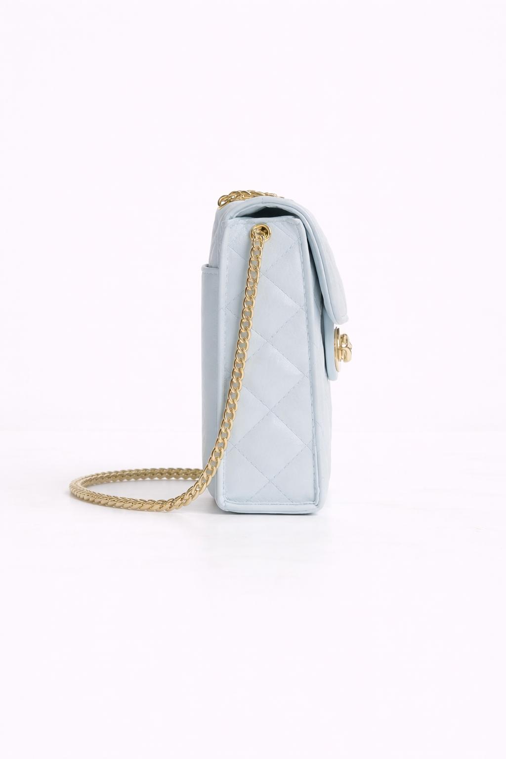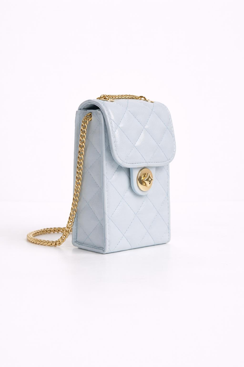 Zarif açık mavi tonu ve kapitone (baklava) dikiş detaylarıyla tasarlanan bu mini çanta, modern ve feminen bir stil sunar. Parlak ve pürüzsüz yüzeyi ışığı yumuşak şekilde yansıtarak lüks bir görünüm kazandırır. Kompakt formu sayesinde hem günlük kombinlerde hem de özel davetlerde rahatlıkla kullanılabilir.
