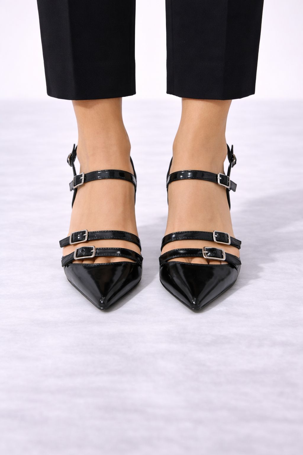 Zarif ve güçlü bir stilin anahtar parçası olan Noir Bella, klasik siyahın asaletini modern tasarım detaylarıyla buluşturur. Sivri burun formu ayağa daha ince ve şık bir görünüm kazandırırken, ön kısımdaki çift tokalı bant tasarımı modele karakteristik ve sofistike bir hava katar.