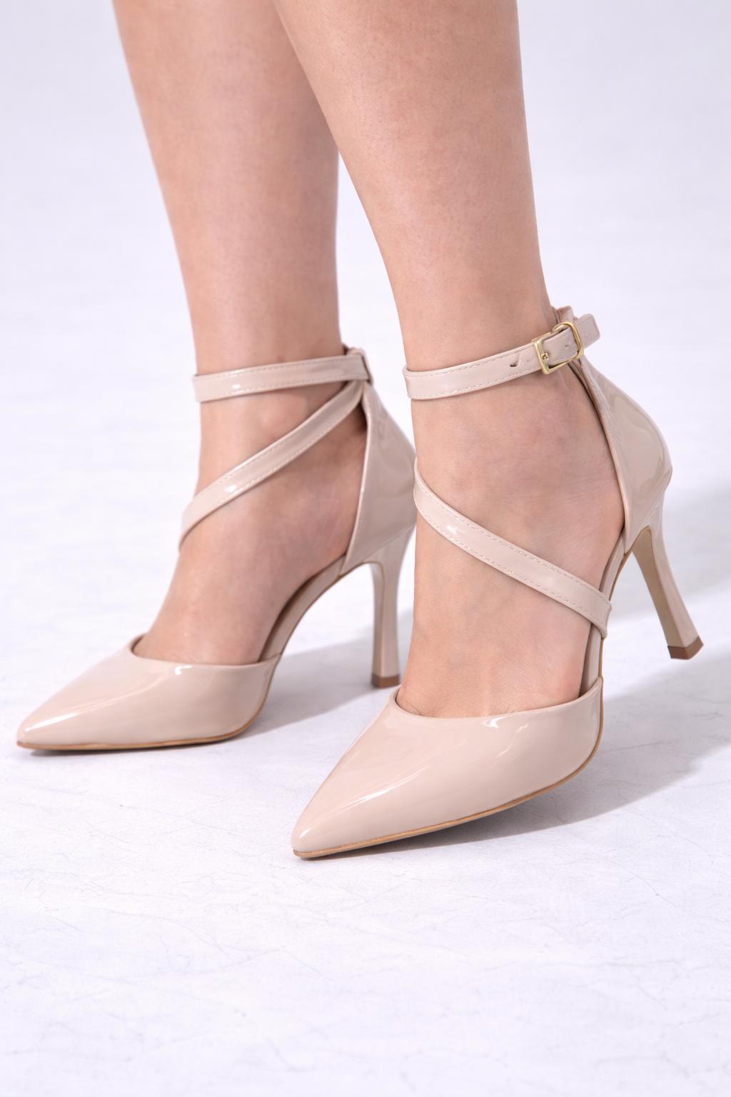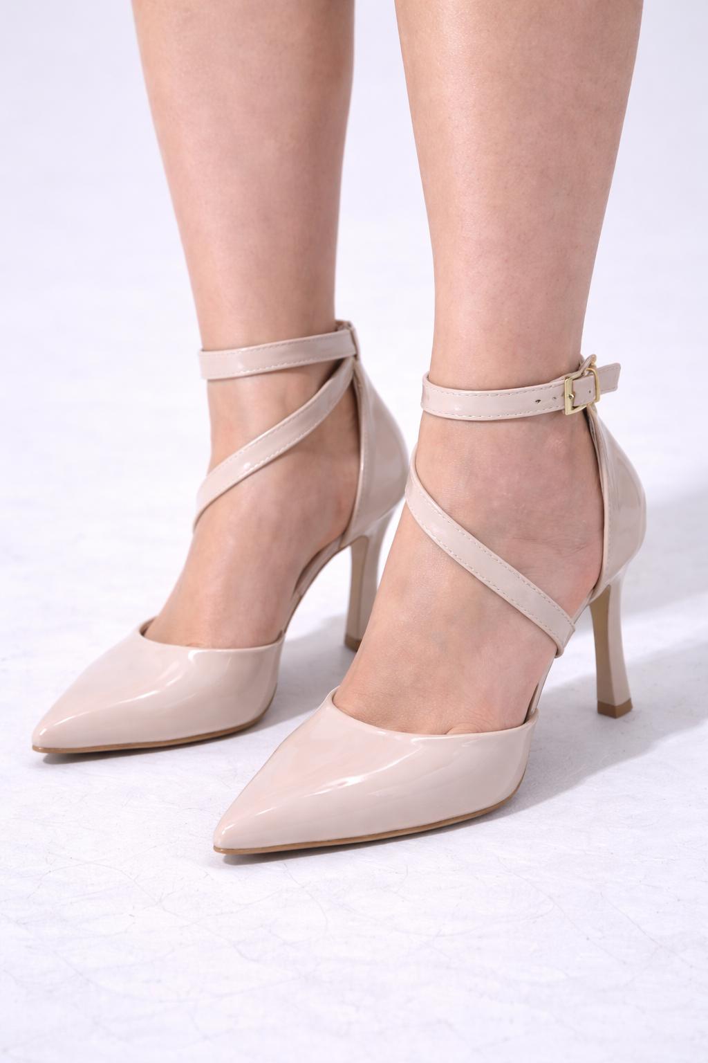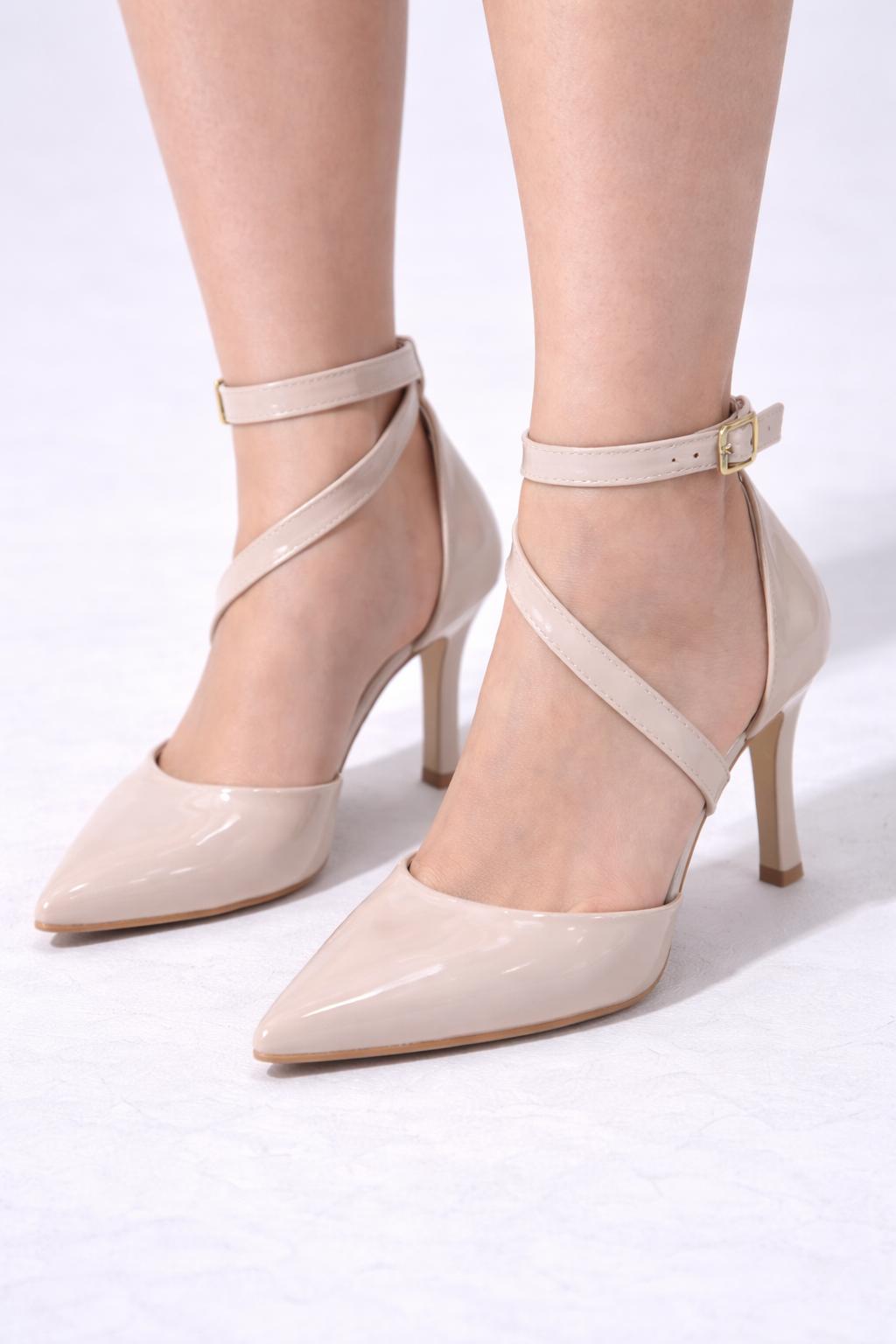 Nude Gloss Çapraz Bantlı Topuklu
