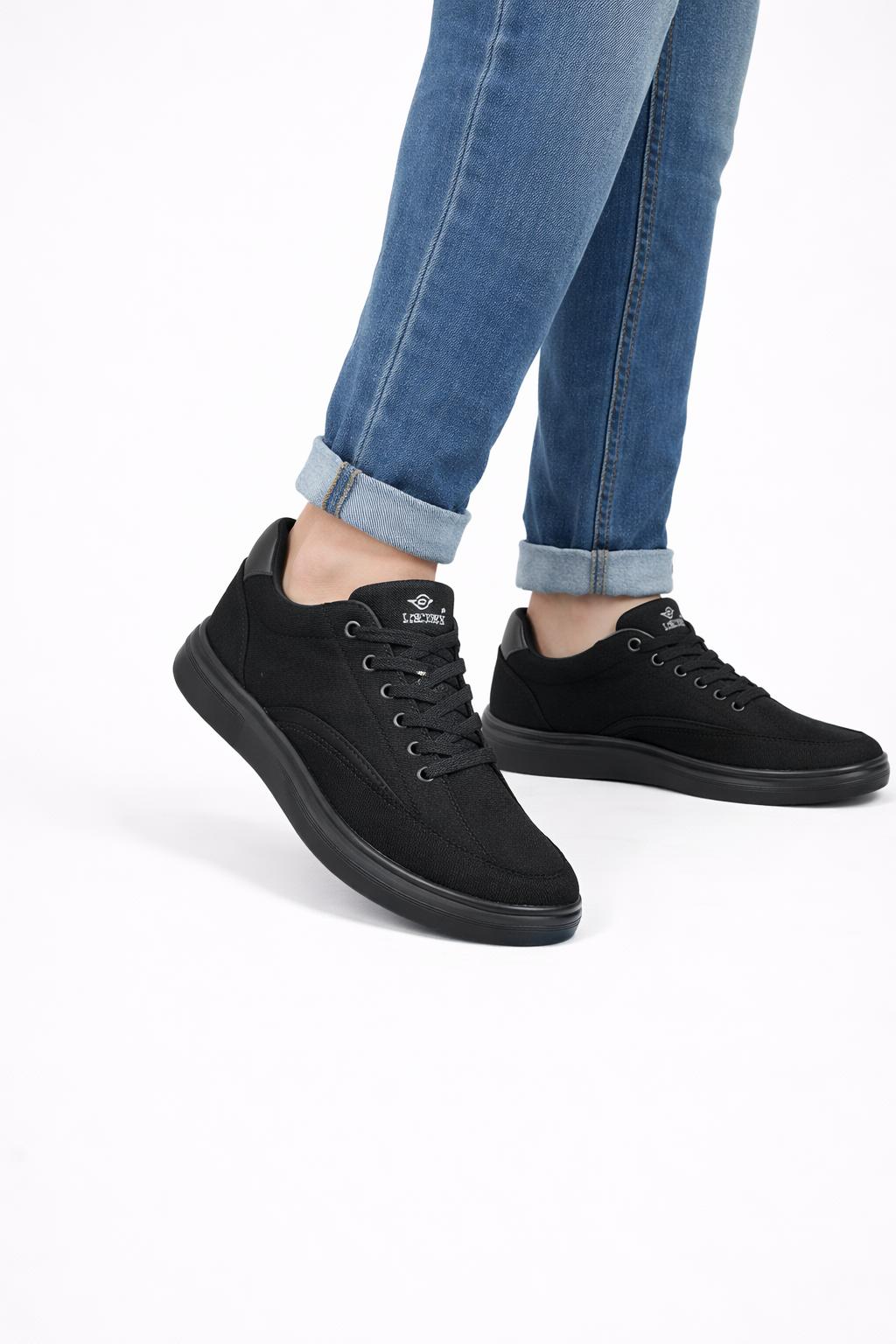 Tam siyah tasarımıyla şık, hafif ve konforlu günlük erkek sneaker modeli.