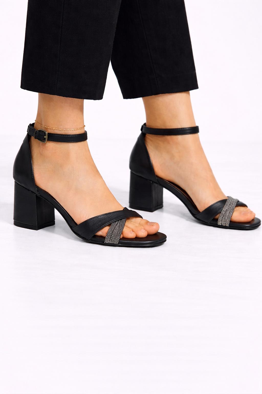 Zarif ve modern tasarımıyla öne çıkan Siyah Taş Detaylı Bilekten Bantlı Topuklu Sandalet, hem günlük kombinlerde hem de özel davetlerde şıklığınızı tamamlamak için tasarlandı. Ön kısmında yer alan ışıltılı taş detaylı bant, sade siyah rengi hareketlendirerek feminen ve dikkat çekici bir görünüm sunar. Bilekten ayarlanabilir tokalı bant sayesinde ayağı kavrayarak güvenli ve konforlu bir kullanım sağlar.